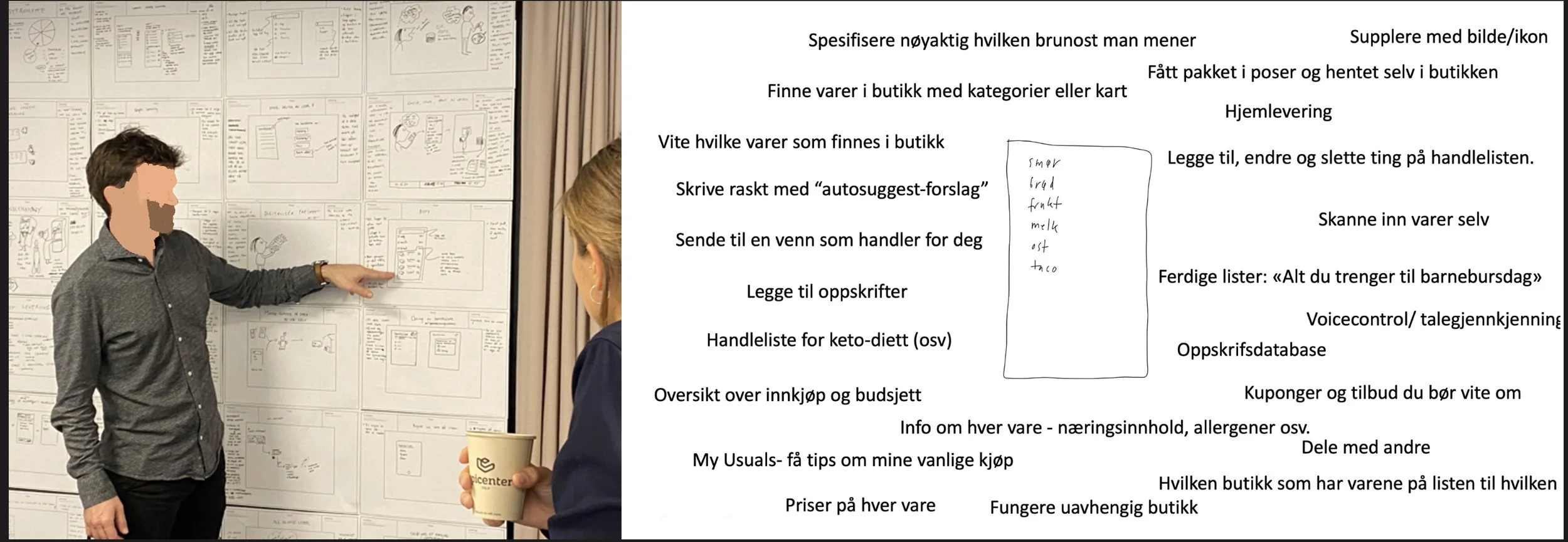 Coop hadde lenge hatt et sterkt ønske om å få en digital handleliste inn i Coop-appen. Dette hadde vært diskutert i flere år, og mange i organisasjonen var engasjerte og fulle av idéer til hvordan løsningen burde være. Utfordringen var å samle og teste disse idéene, og komme frem til en løsning som faktisk traff behovene til kundene, spesielt med tanke på at 70% bruker penn og papir når de skriver handlelister.